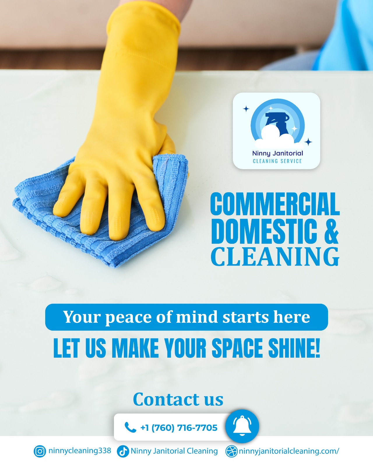 At Ninny Janitorial Cleaning, we specialize in providing high-quality cleaning services for a variety of environments. With years of experience in the industry, our mission is to ensure spotless spaces that promote health, well-being, and customer satisfaction.